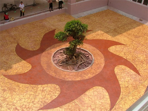 壓模地坪(壓花地坪)是用模具在混凝土表面初凝階段按照規(guī)定順序一塊一塊拼接而成的效果,需要用到壓模地坪模具和鐵墩將模具用力壓在混凝土表面從而形成花紋。