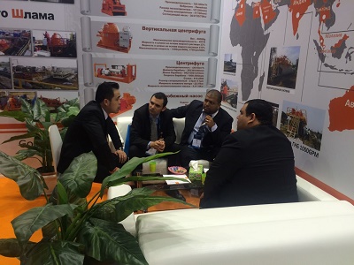 本屆展會,正道能源展位位于21E19號,背景墻上有正道能源多項設備及系統(tǒng)在全球各地的應用案例?,F(xiàn)場還設置了多媒體電視,筆記本電腦等演示設備。正道能源銷售工程師們也將為客戶提供詳細的產(chǎn)品介紹。本次展會將主要展示針對俄羅斯當?shù)貧夂颦h(huán)境及地質條件設計研發(fā)的泥漿固控系統(tǒng)及鉆井廢棄物處理設備。展會首日,正道能源展位就吸引了很多當?shù)丶皝碜允澜缙渌貐^(qū)的客戶和觀展者。