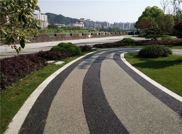 (3)膠粘石透水路面是景觀效果非常好的一種,圓潤(rùn)、密集、顆粒均勻一致、孔隙分布有致,地面工程之作可謂盡善盡美。膠粘石透水路面特點(diǎn):